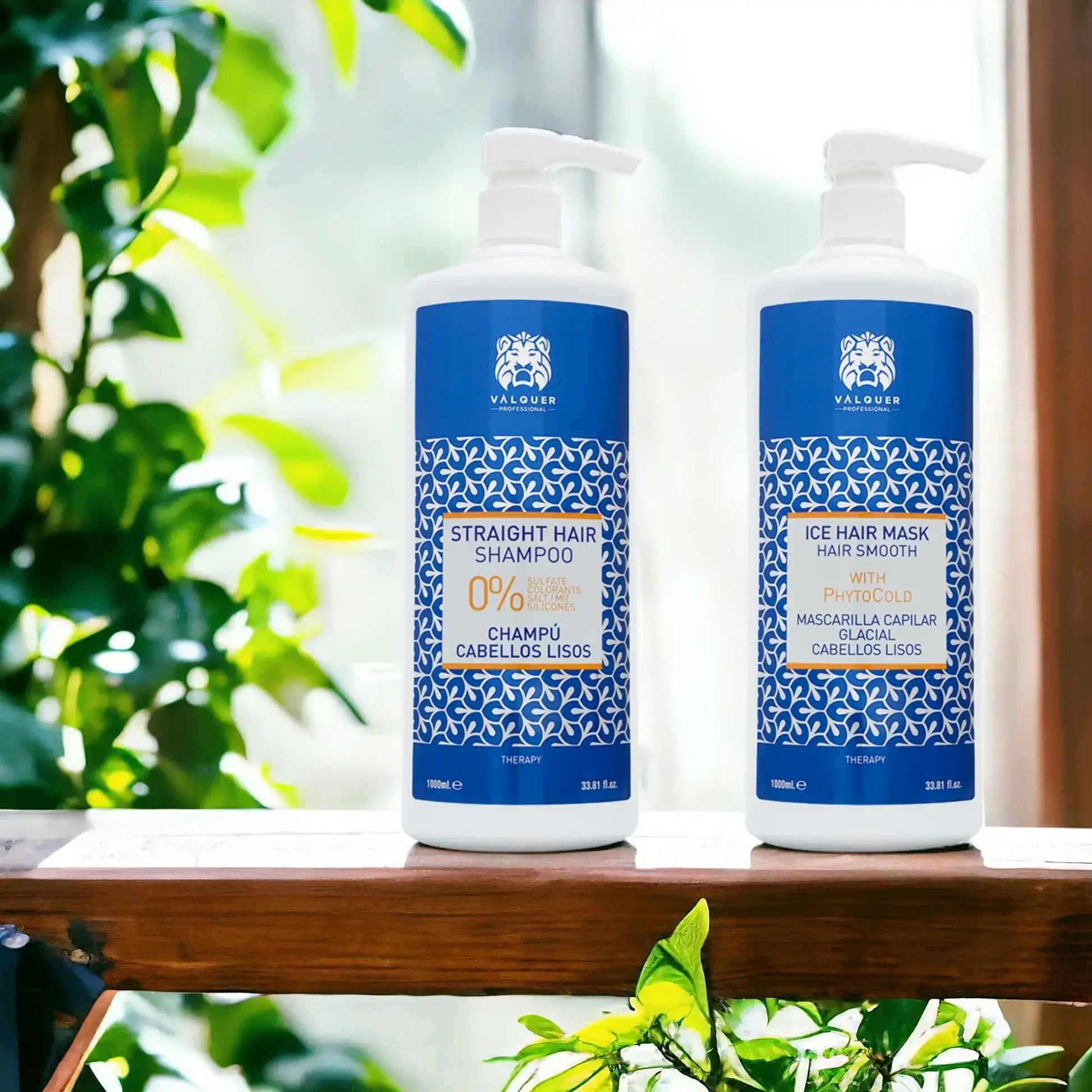Consigue un alisado perfecto y duradero con este pack profesional de Valquer que incluye champú y mascarilla capilar con efecto glacial.