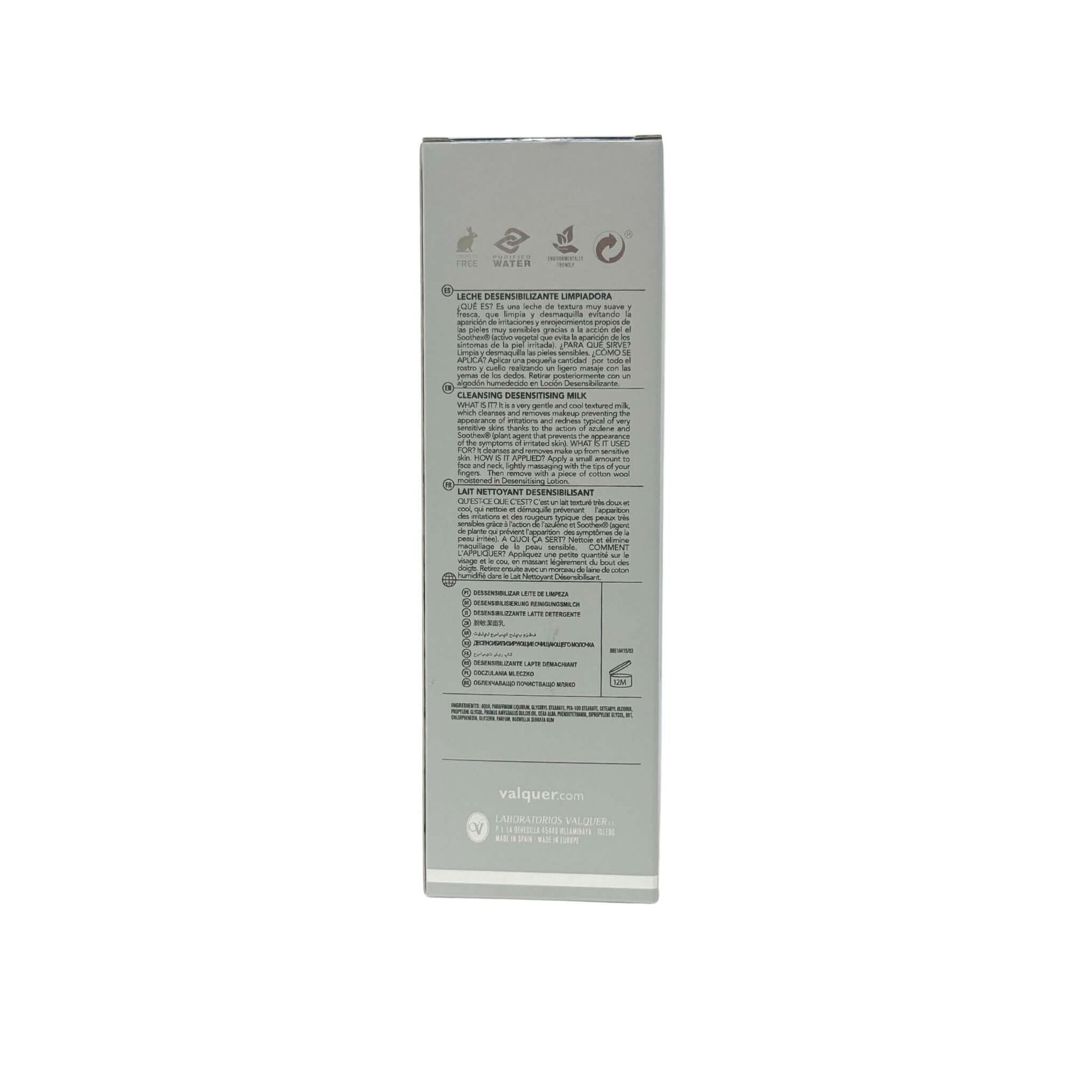 Leche limpiadora facial desensibilizante. De textura muy suave y fresca, limpia y desmaquilla la piel evitando la aparición de irritaciones y enrojecimientos propios de las pieles que son muy sensible.
