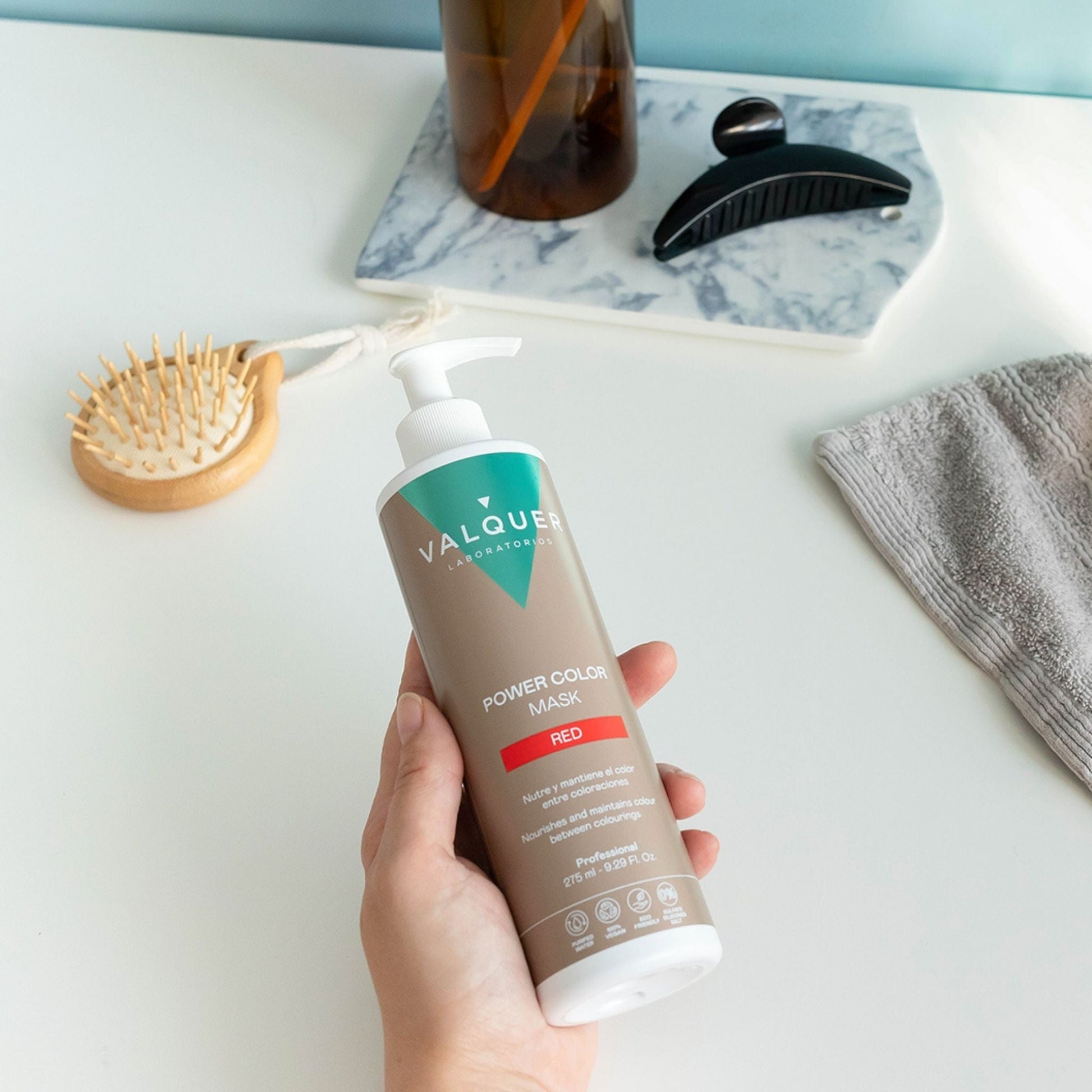 Coloración profesional y tratamiento nutritivo en un solo paso. Esta mascarilla color de Valquer combina pigmentos rojos intensos con ingredientes hidratantes para un cabello radiante y saludable con un tono vibrante y lleno de vida.